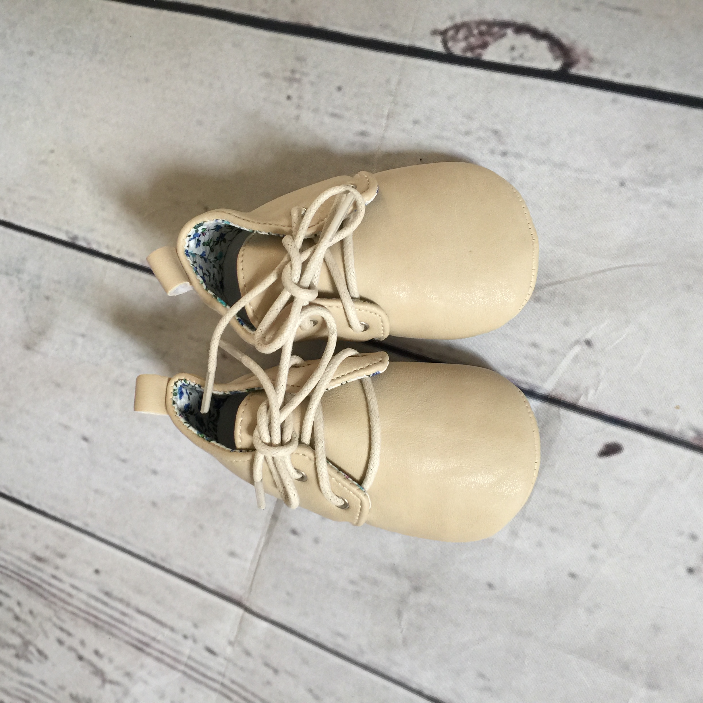 Soft and comfy oxford crib shoes with floral lining.